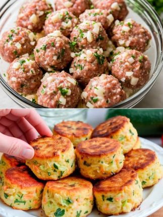 Zutaten: 2 mittelgroße Zucchini 300 g Putenhackfleisch 1 kleine Zwiebel, fein gehackt 2 Knoblauchzehen, durch eine Presse gepresst 1 Ei 2 Esslöffel Semmelbrösel (plus etwas mehr zum Panieren) 1 Teelöffel getrockneter Oregano 1 Teelöffel süßes Paprikapulver Salz und Pfeffer nach Geschmack 2 Esslöffel Pflanzenöl zum Braten